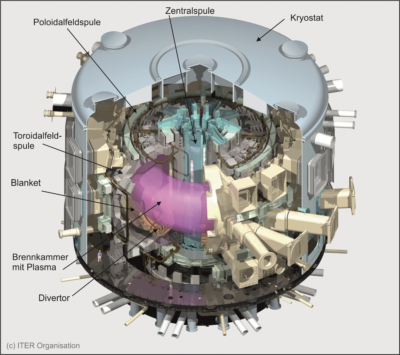 Die Fusionsforschung macht derzeit mit dem Bau des Experiments ITER einen entscheidenden Schritt in Richtung auf einen zukünftigen Fusionsreaktor. Nach derzeitigem Planungsstand sind ein erstes Plasma Ende 2019 sowie ein voller DT-Betrieb mit 500 MW Fusionsleistung in 2026 vorgesehen.